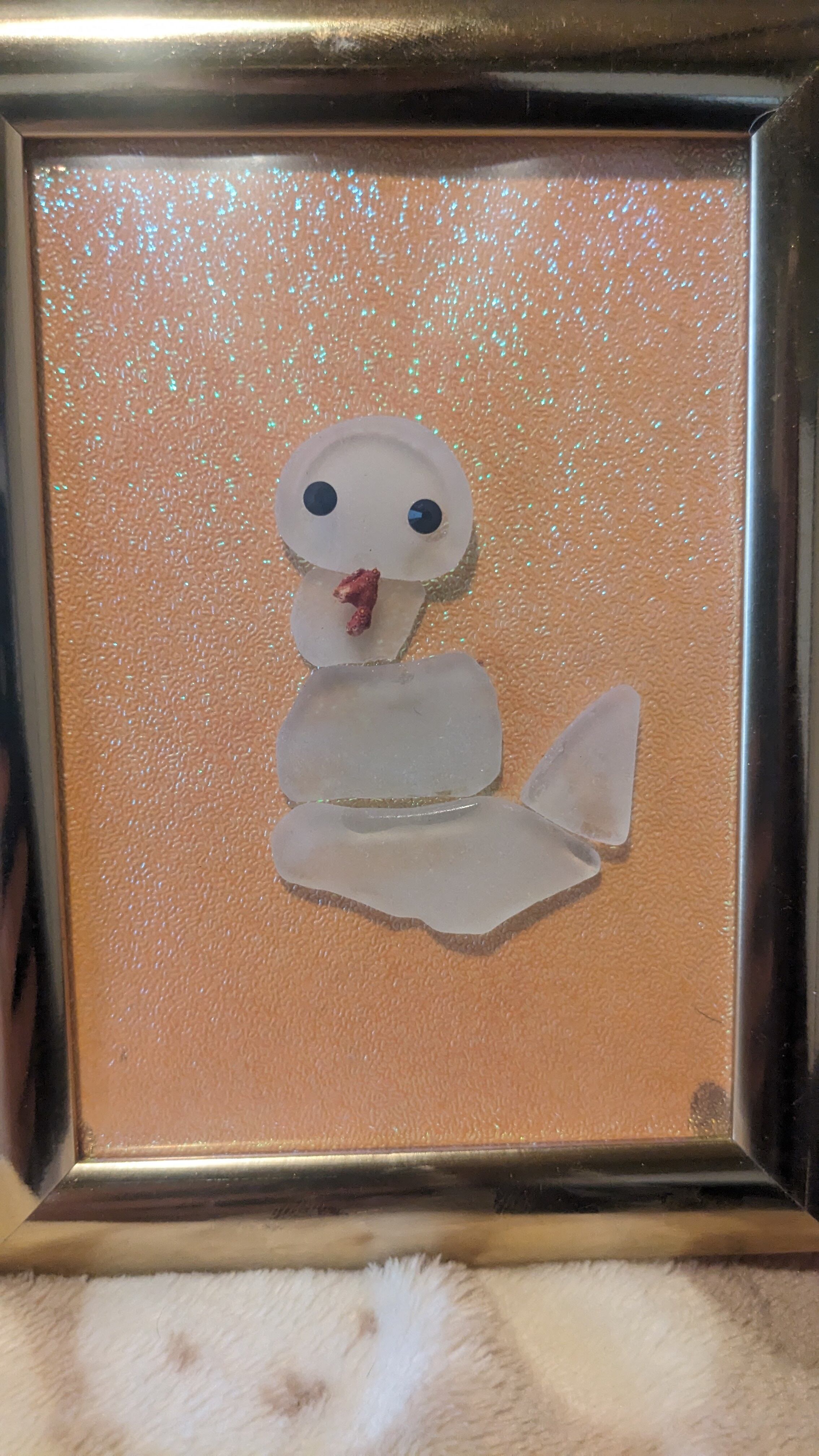 縁起ものの白蛇を可愛くシーグラスで作りました。 舌は珊瑚です。 裏面に少し接着剤のシミあります。 白蛇は縁起ものなので願いを込めて作りました。