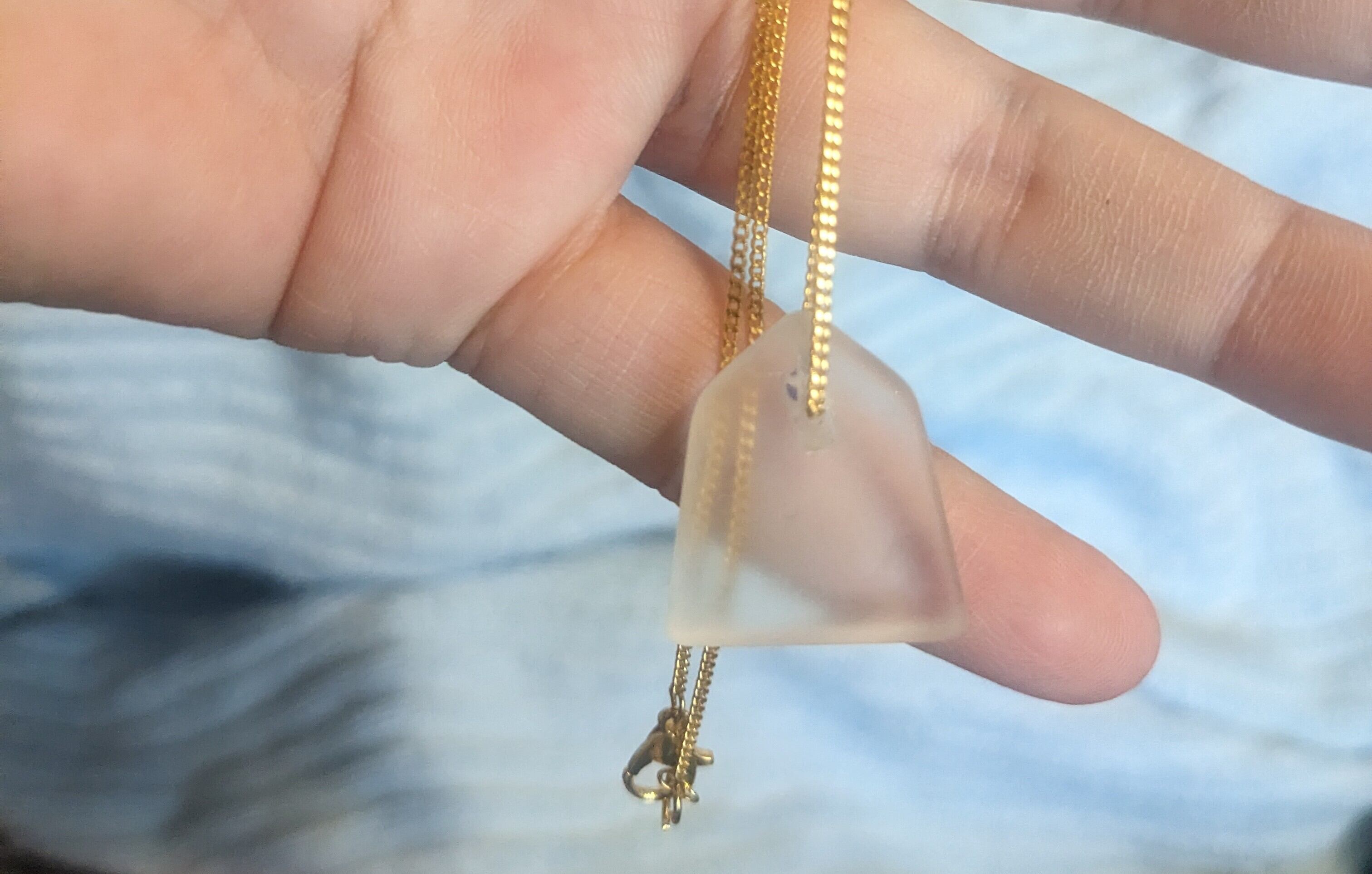 将棋の駒のような形で綺麗に削れているシーグラスを見つけたのでネックレスにしました。